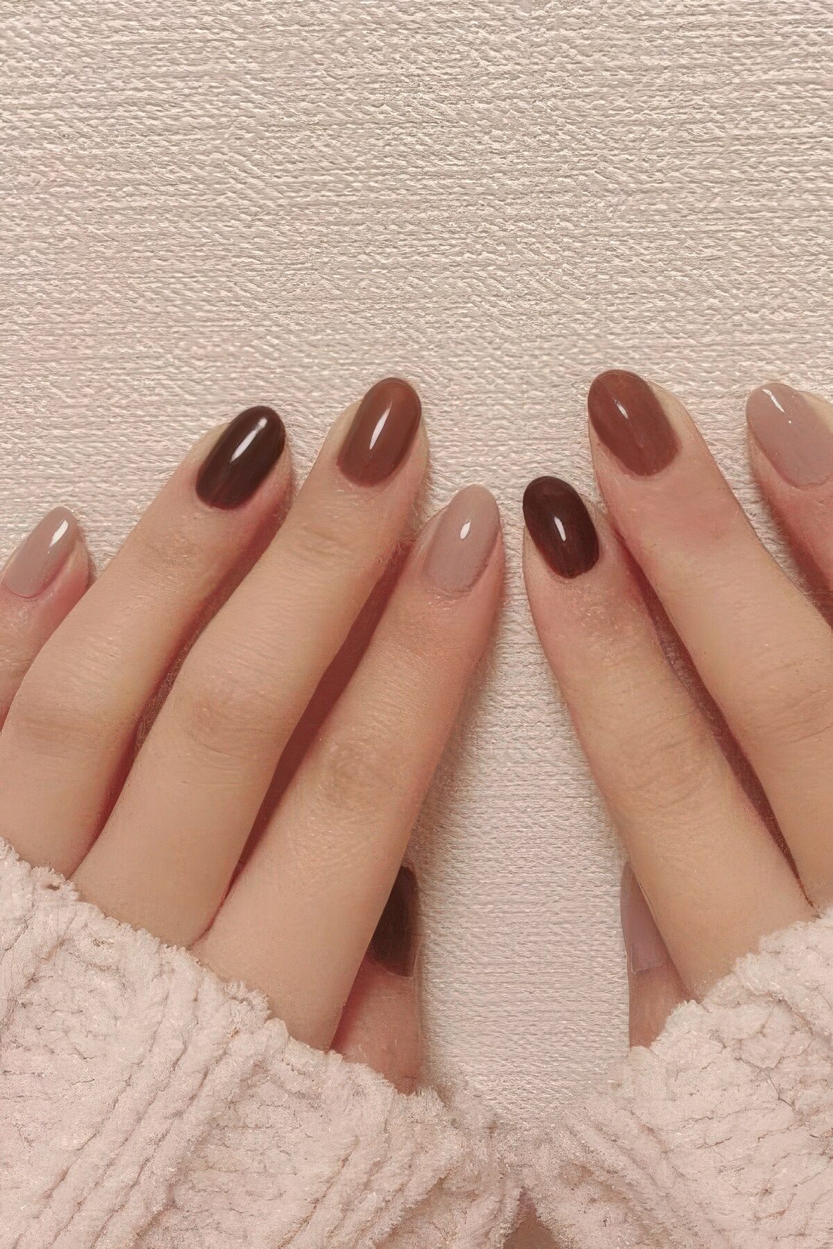 Rich shades of earthy brown dance across your nails, creating a warm and inviting look.