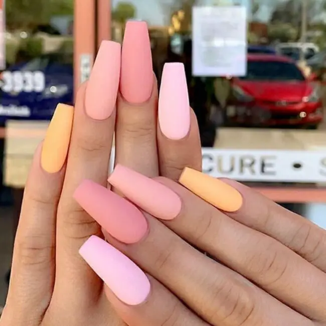 Whether you prefer bright pinks, corals, pastel blues, or sunny yellows, the coffin shape offers enough length and width to make a bold statement.