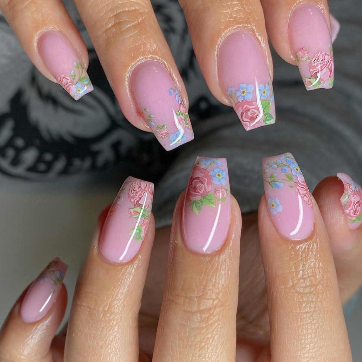 The combination of delicate florals with vibrant colors gives your nails a cheerful and uplifting vibe, echoing the joy and renewal that spring brings.