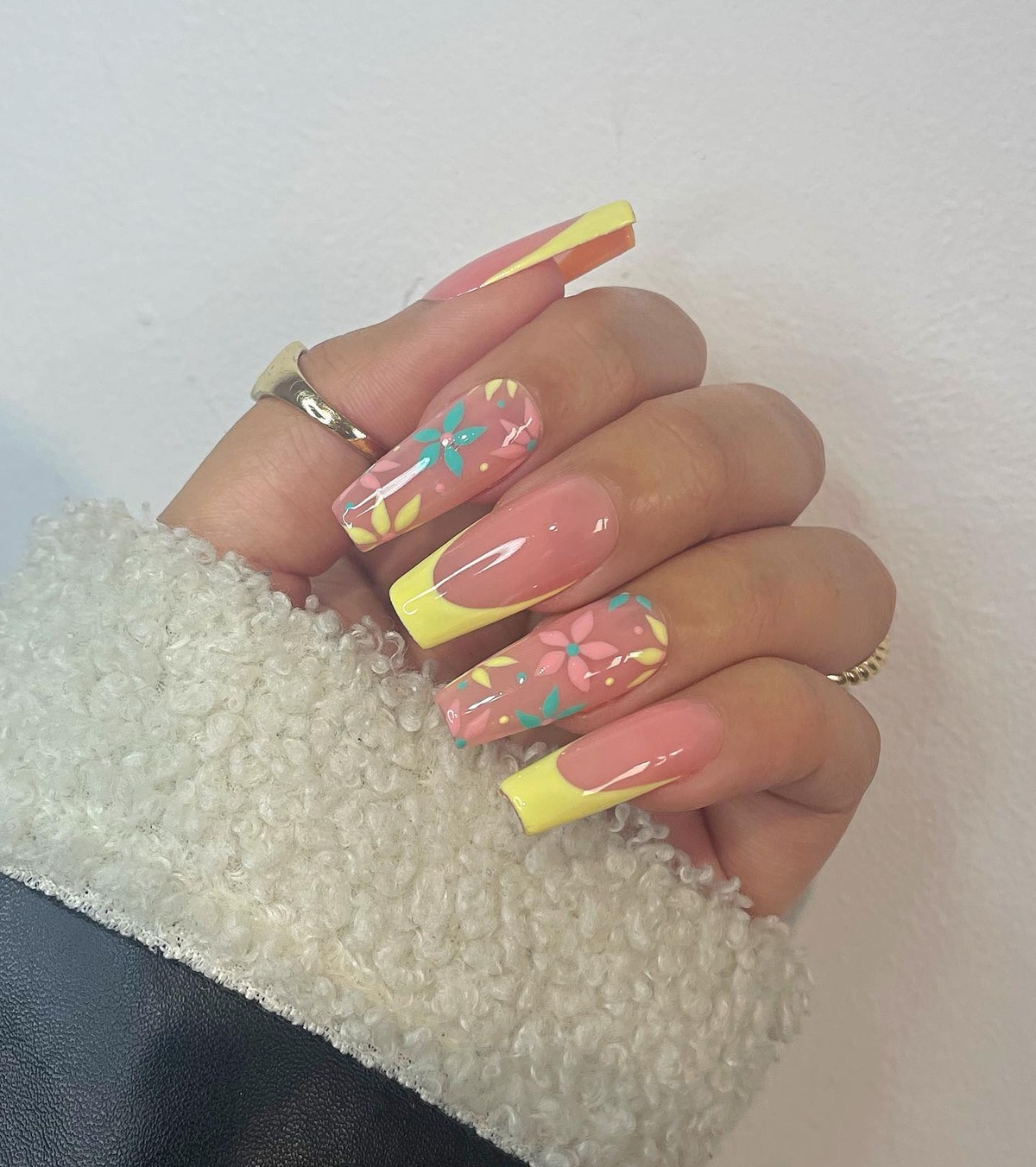 The combination of sunny yellow and bright, blooming florals brings an uplifting energy to your nails.
