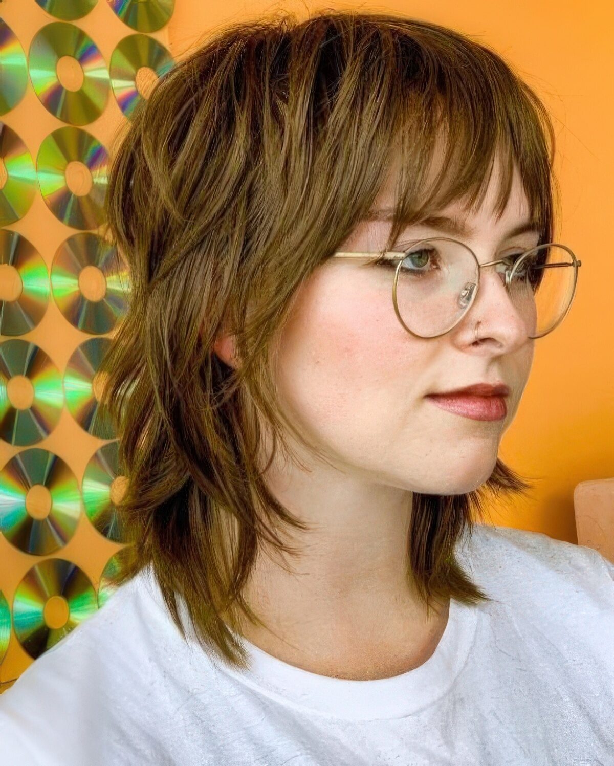 The tousled layers create movement that feels alive and spirited, while the shaggy bangs add an element of playfulness.