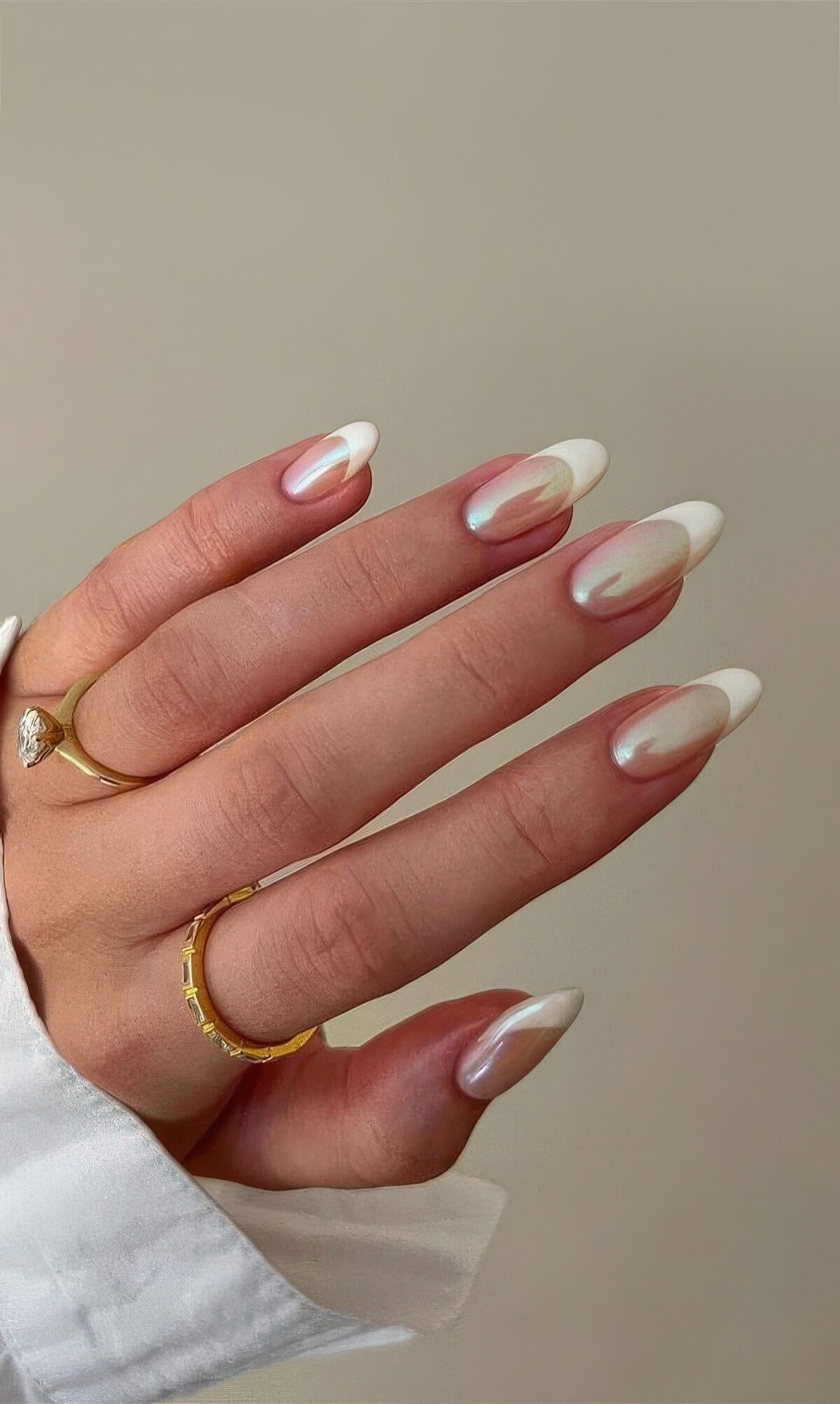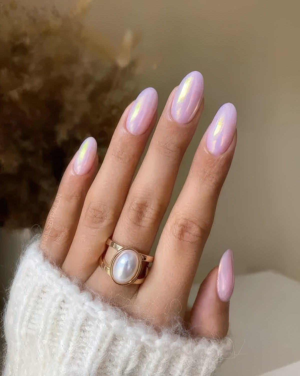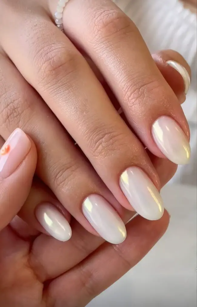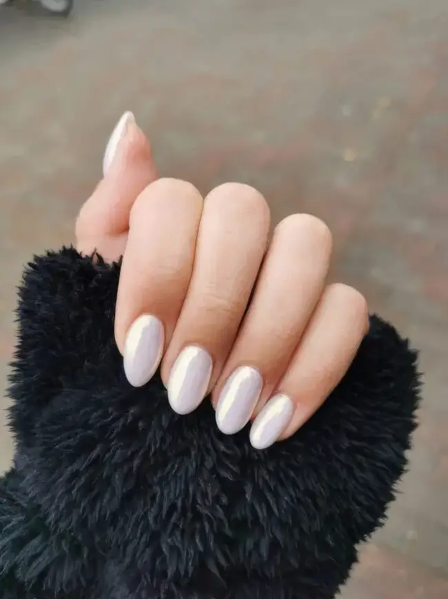 A delicate elegance radiates from nails adorned with a pearly finish.