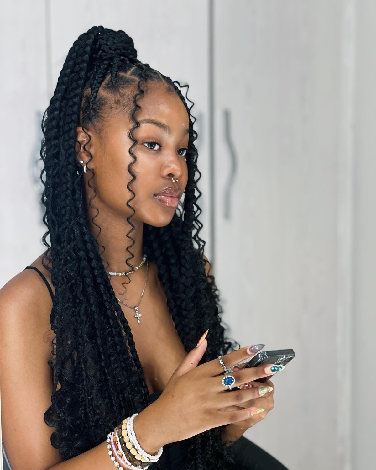 Box braids can be styled in numerous ways, from a sleek bun to a voluminous ponytail, making them versatile for different occasions.